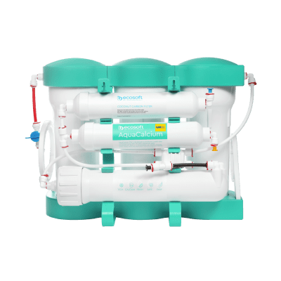Filtri i osmozës së kundërt Ecosoft P’URE AquaCalcium Mint heq 99,8% të ndotësve nga uji dhe siguron ujë të pijshëm të shijshëm, të freskët dhe të butë të pasuruar me kalcium.